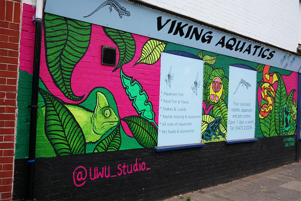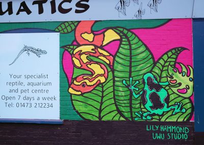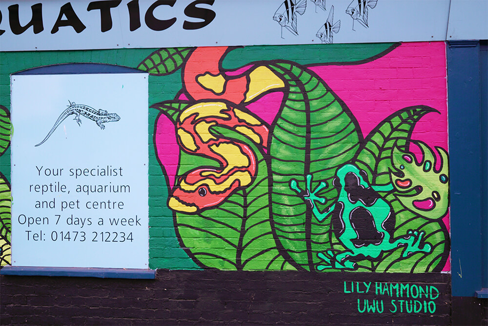 Wild Walls Ipswich 2024 was a programme of free creative activities for young people and a celebration of street art which took place in Ipswich over the summer 2024. This project was made possible through generous support from the Arts Council of England, the UK Government Fund, Ipswich Borough Council, Ipswich Central and the University of Suffolk.